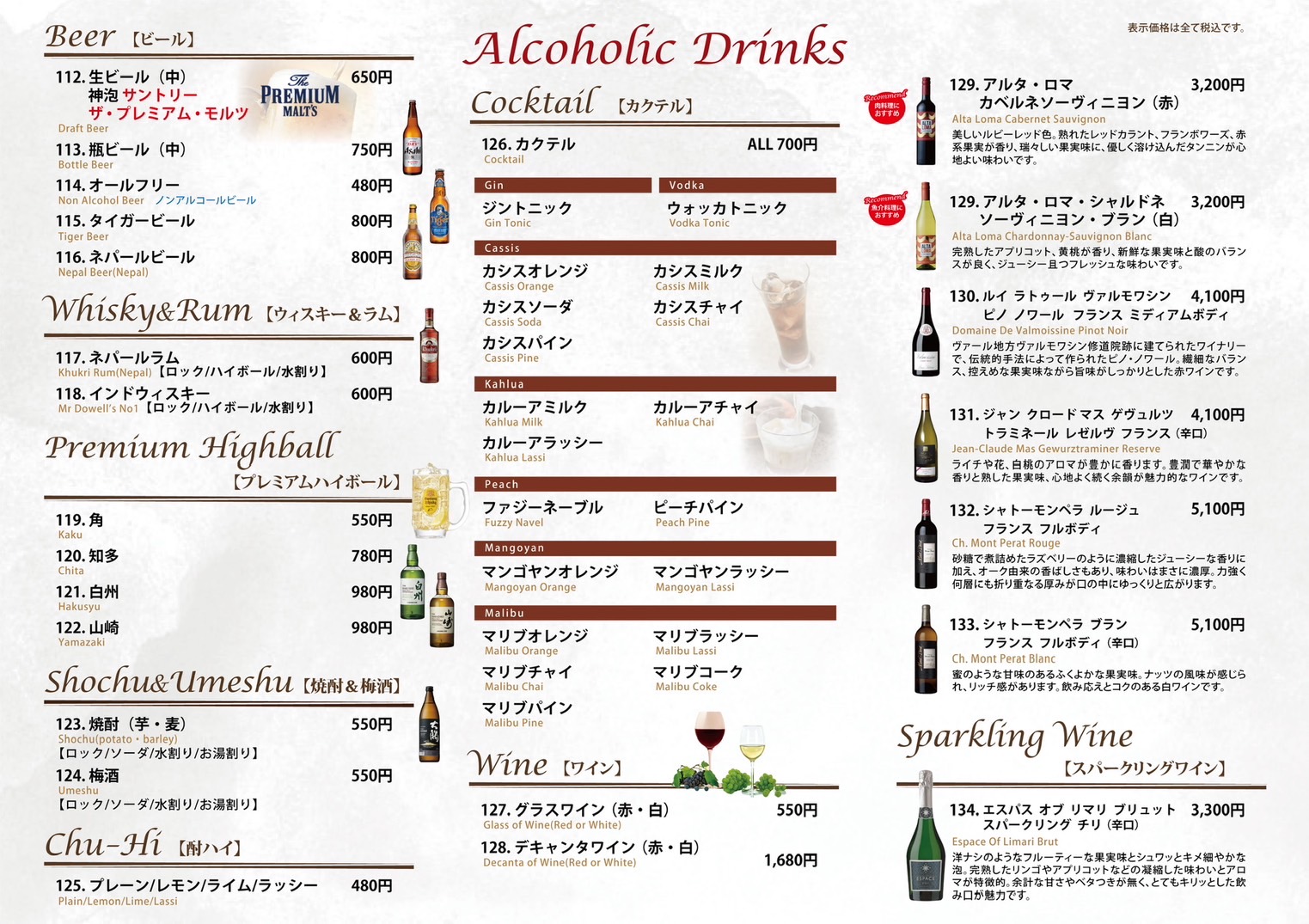 選べるカレー(本日のカレー/チキンカレー/ベジタブルカレー/ほうれん草とチキンカレー/キーマカレー/エビカレー)チキンティッカシークケバブナン & ライスサラダ & ドリンク